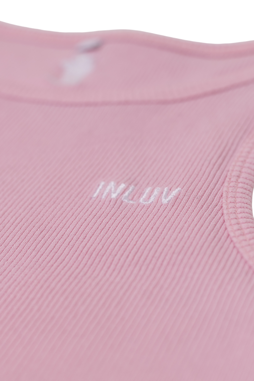Das rosafarbene Crop Top besteht aus weichem Rib-Material und trägt vorn ein kleines INLUV-Stitch. Clean, comfy, charakterstark.